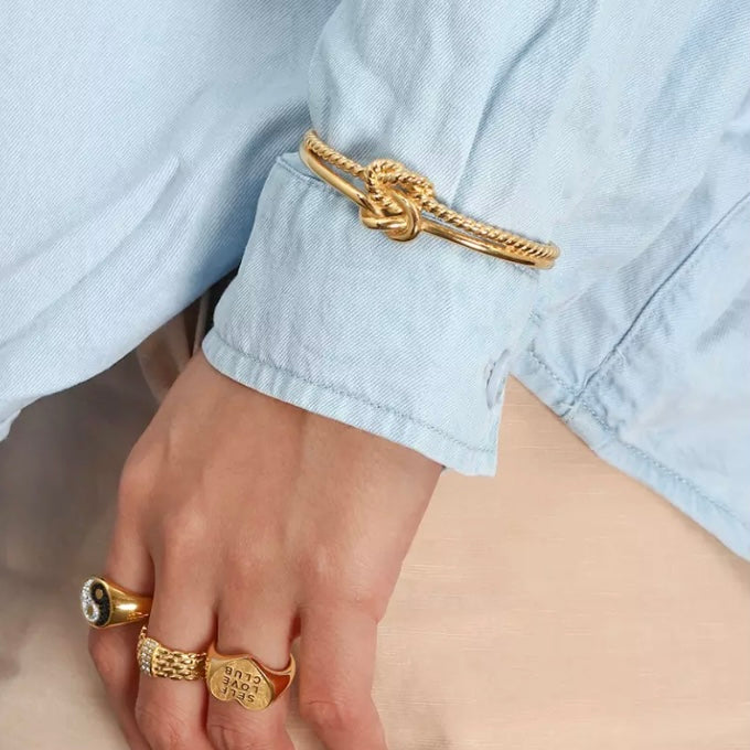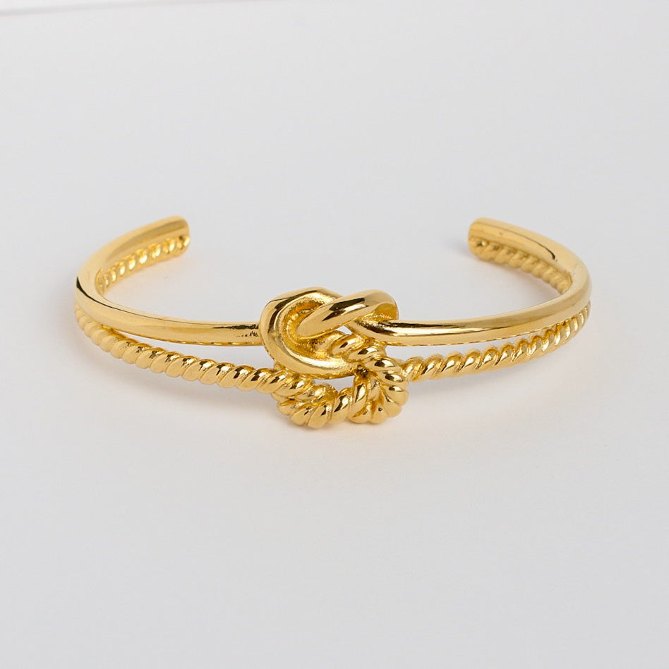 Durable 18k gold plated stainless steel double knot rope cuff.